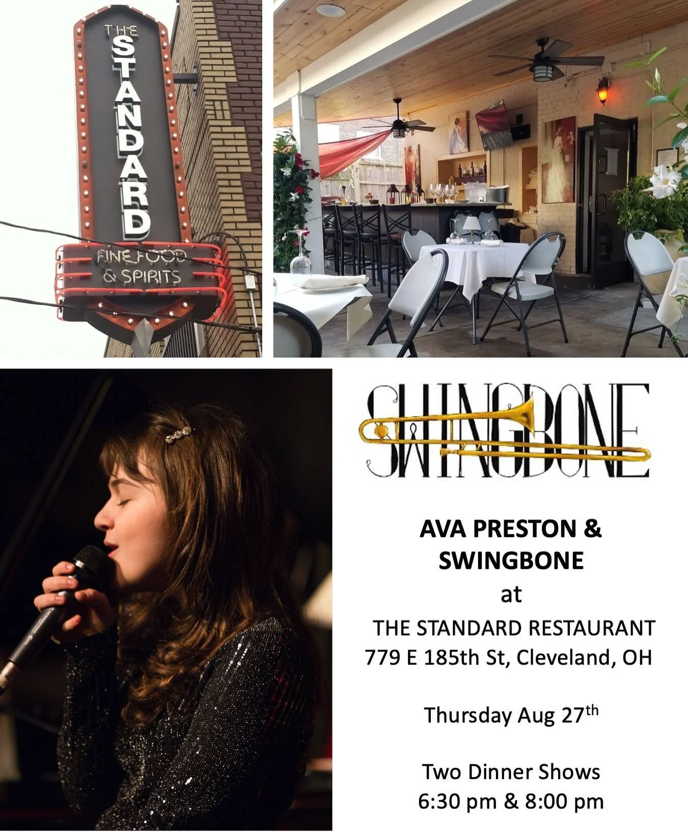 View fullsize I’m really excited to finally perform a live show, actually two outdoor shows with Swingbone at The Standard restaurant in Cleveland on Aug 27th. The patio is beautiful, the food is amazing and the tables are safely spaced apart. Please come ou